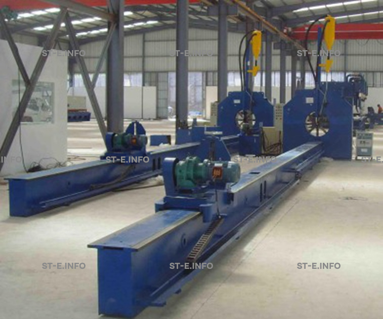Хомуты на движущемся устройстве тяги зажимают конец изделия, после того, как комплекс приводится в действие, изделие начнет двигаться равномерно от малого конца к большому концу. Сварочный автомат осуществляет автоматическую дуговую сварку под флюсом и формирует прочный аккуратный шов.